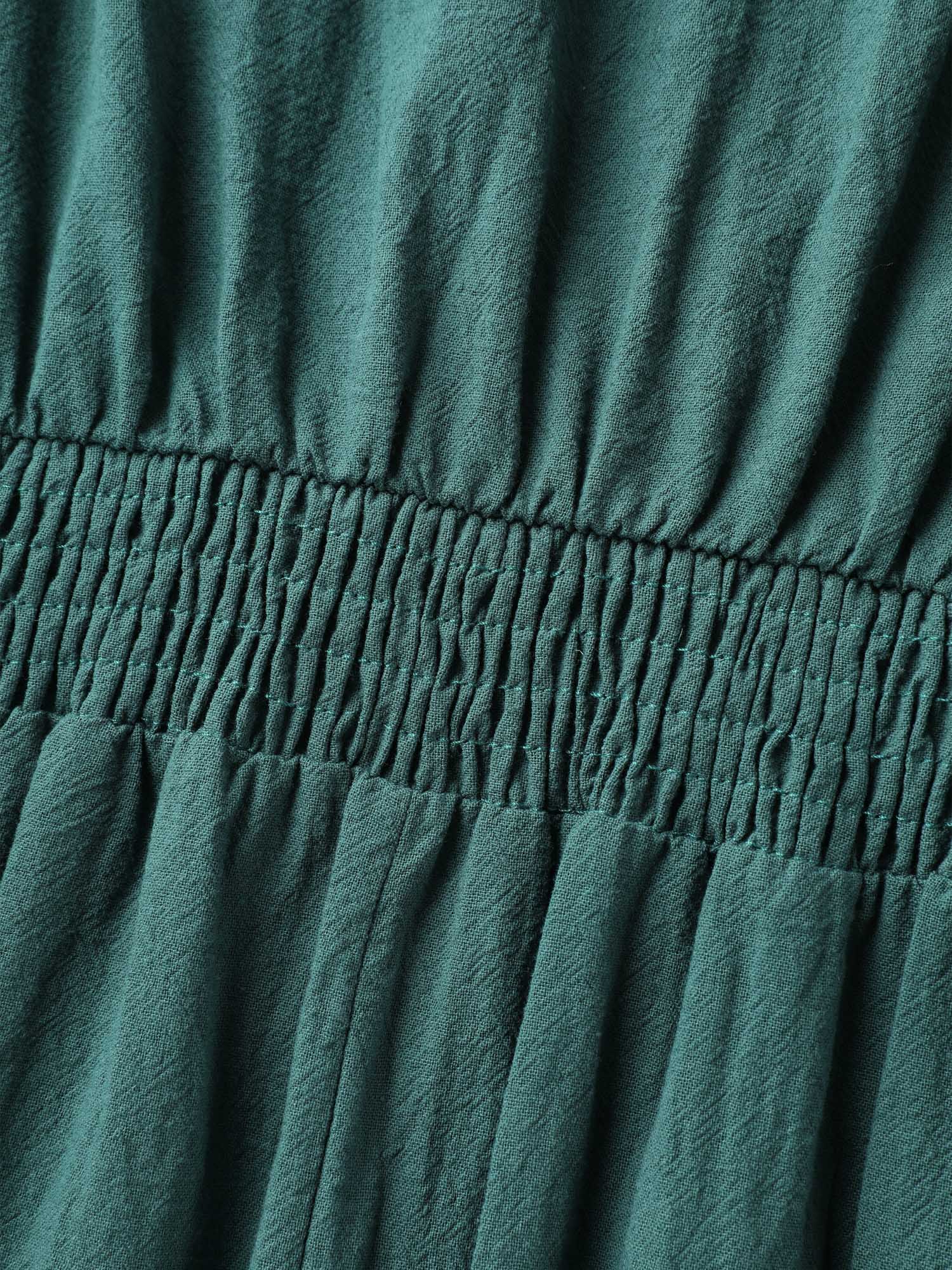 Pure Cotton Button Gathered Sleeve Midi Dress