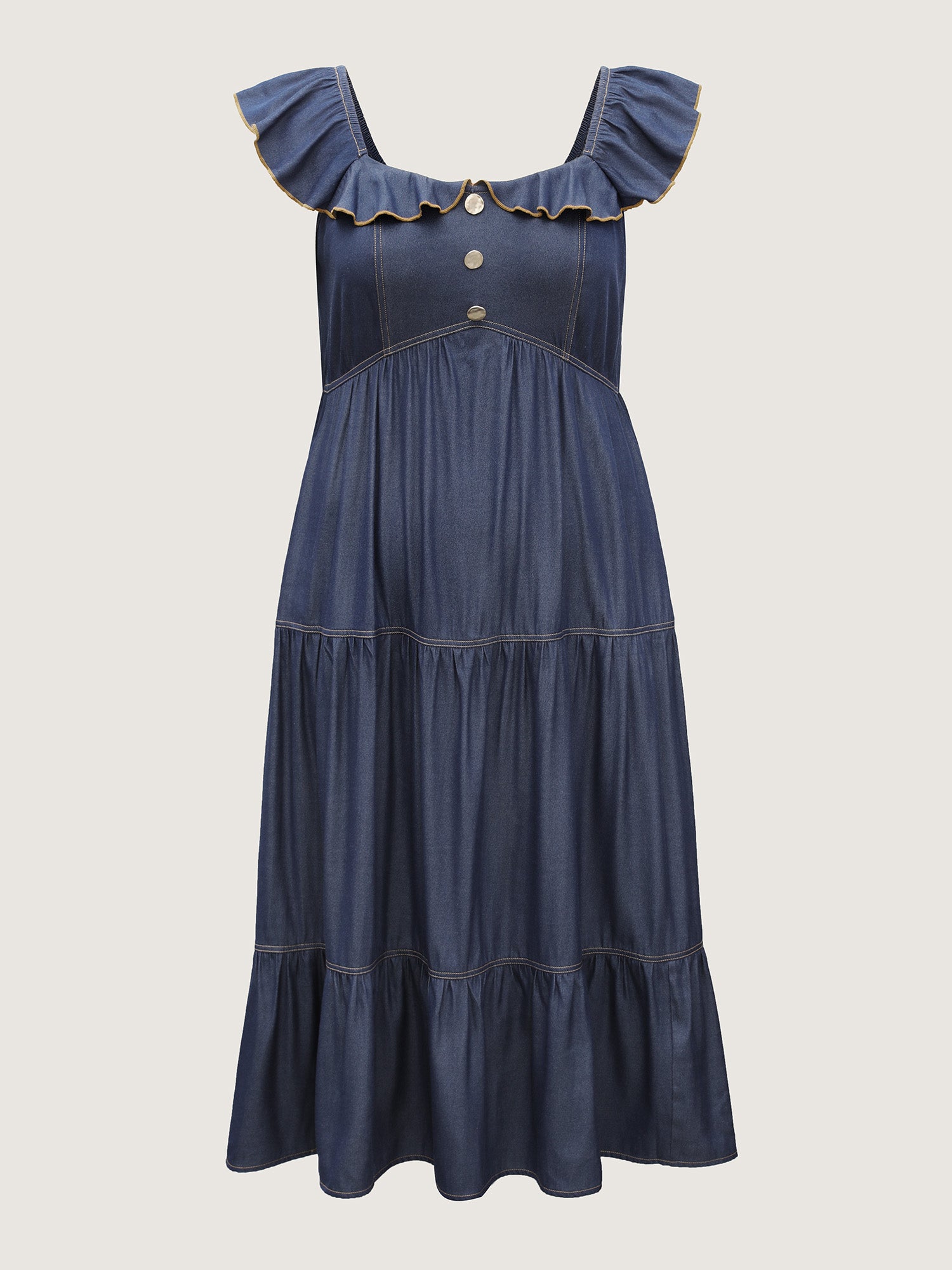 Denim-Like Ruffled Tiered Midi Dress